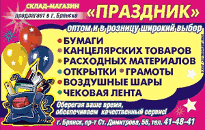 Склад-магазин Праздник, г. Брянск | продажа канцелярских товаров, бумаги, расходных материалов, чековой ленты, воздушных шаров | Cправочная служба 071 г.Брянск